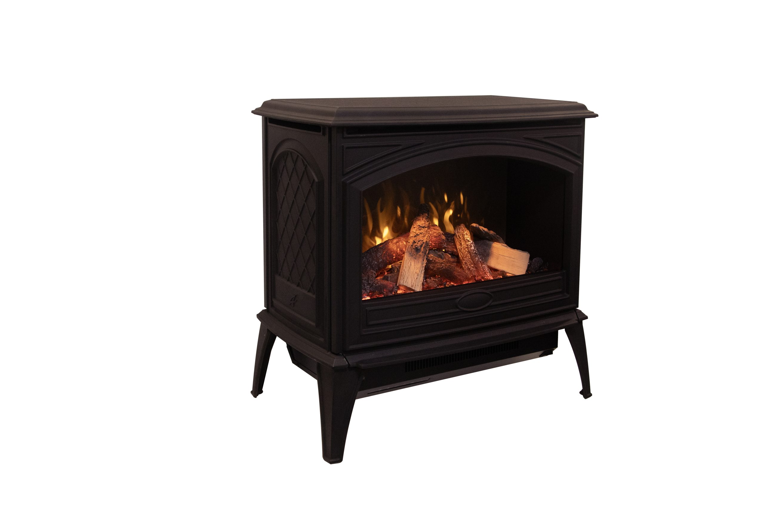 The Amantii E70-HO cast iron stove is a freestanding electric fireplace with high-output heating. It has a cast iron top and sides for authentic style and presence in your room. With no installation boundaries, no need for mounting brackets or building into a wall, this electric fireplace can go in any room you like. The Amantii E70-HO is a stylish and practical heating solution for any home, with classic woodstove styling, including intricate detailing. It’s crafted from high-quality cast iron to provide durability and long-lasting performance. With its powerful heating element, the E70-HO freestanding electric stove is capable of quickly and efficiently heating up any room. The adjustable temperature and flame settings allow you to customize the ambiance to suit your preferences, while the realistic log set creates the cozy look and feel of a traditional wood stove without the hassle or mess. The E70-HO is easy to install and requires no venting or gas lines, making it a versatile and cost-effective heating solution for any space. Whether you’re looking to add warmth to your living room, bedroom, or home office, the E70-HO stove from Amantii is the perfect choice.
